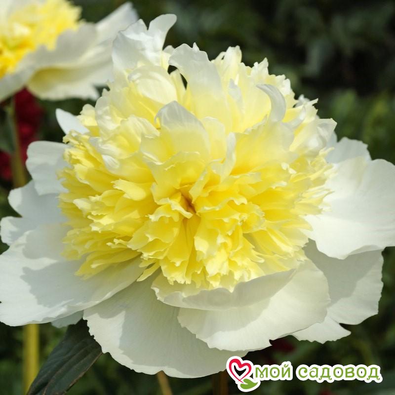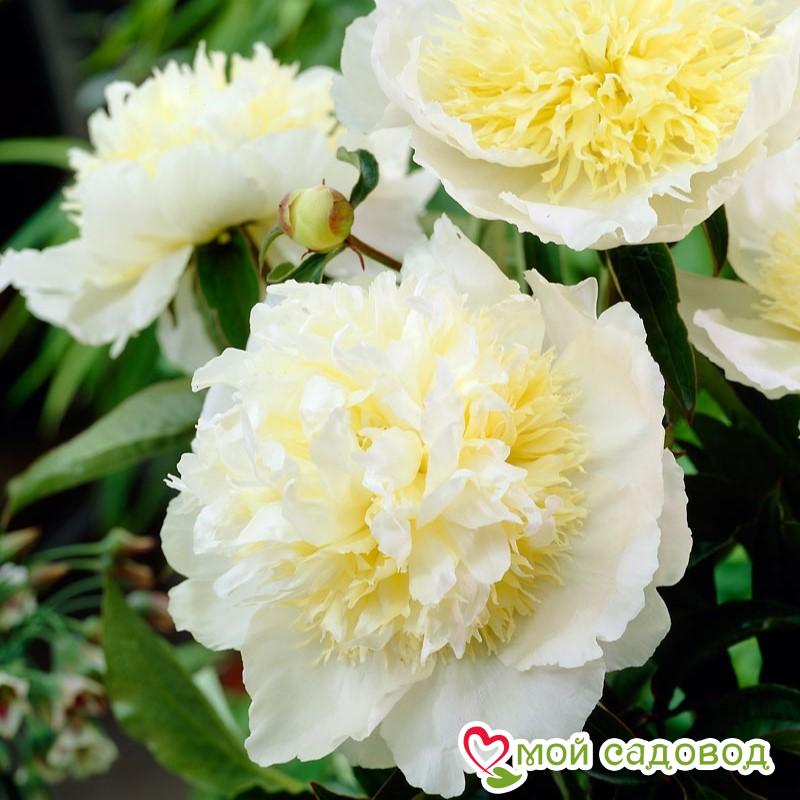 Пион Хани Голд. Высота 90-100 см, диаметр цветка 17 см. Срок цветения средний (май-июнь). Махровый, корончатый. Внешние крупные округлые лепестки бело-кремовые, внутренние золотисто-желтые, мелкие и рассеченные. Место посадки Для посадки пионов понадобится защищенное от ветров место с хорошей освещенностью. Сорта светлой окраски, а также пионы с простыми и полумахровыми цветками можно посадить на частично затеняемом участке, это продлит цветение и защитит цветы от выгорания. Почва для посадки Залог успешного цветения пиона в будущем — это подготовка почвы! 1. Подготовка ямы — 70*70 см на скудных песчанистых и торфянистых почвах — 50*50 см на плодородных, окультуренных почвах. ХРАНЕНИЕ ДО ПОСАДКИ: После получения посылки, рекомендуем вскрыть пакет и осмотреть корневище. Почки должны быть плотные и розового цвета. Так же уделите внимание самому корневищу, все сомнительные, потемневшие, сморщенные части удалите, а места среза обработайте зеленкой или залой. Если почки еще не тронулись в рост, а высаживать в открытый почву рано, советуем Вам хранить корневище в холодильнике, обязательно оставляя его в пакете с торфяной смесью или в коробке под снегом. Если почки успели раскрыться это не критично, сохранить до посадки их так же возможно, высадите корень пиона в большой просторный горшок или в любую другую ёмкость.